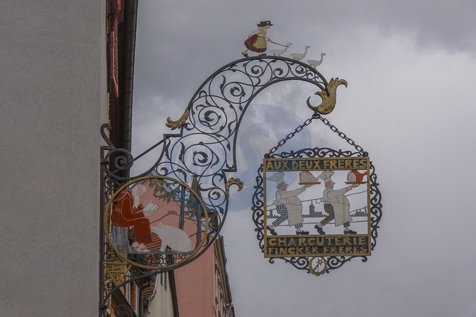 France, Alsace region, Colmar, Historical wrought-iron sign of a butcher's shopPhoto Fabio Mazzarella/Sintesi *** Local Caption ***, Credit:Fabio Mazzarella / Avalon