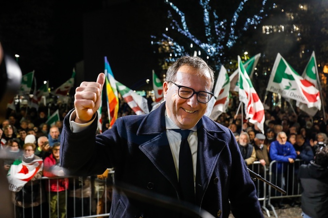 The national secretary of the Democratic Party in Veneto at the regional rally closing Giovanni Manildo's electoral campaign in Mestre on the 19th Nov 2025, Credit:Mirco Toniolo / Avalon