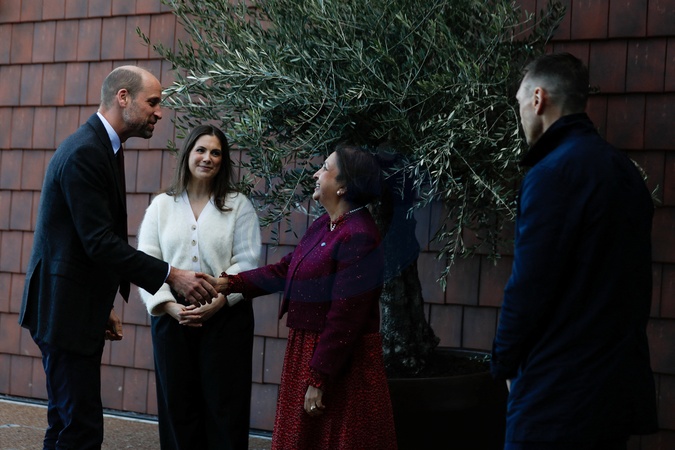 Britain's Prince William, Prince of Wales is welcomed by Dr. Agam Jung, rugby union coach Kevin Sinfield and Lindsey Burrow, wife of the late rugby league player Rob Burrow CBE, during a visit to the Rob Burrow Centre for Motor Neurone Disease at Seacroft Hospital, in Leeds, Britain, November 20, 2025., Credit:Temilade Adelaja / Avalon