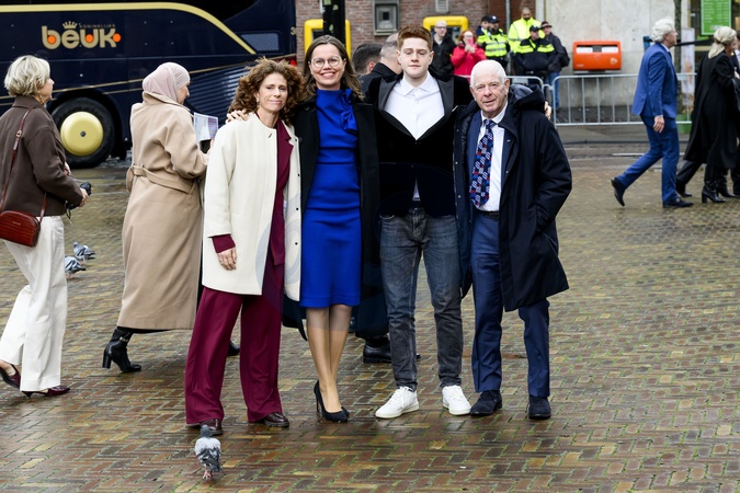 Den Haag, The Netherlands, 2025-11-20 10:18:00THE HAGUE, 20-11-2025, Grote Kerk (Great Church) Special Joint Session of the Senate and House of Representatives in the Grote Kerk (Great Church) in The Hague. On November 20, it will be exactly eighty years since parliament first convened jointly after the Second World War. PHOTO: NLBeeld/Patrick van Emst. Pictured: Frits and Barbara Barend with Mirjam Bikker., Credit:Avalon