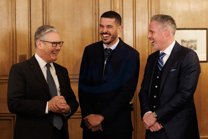 19/11/2025. London, United Kingdom. Prime Minister Keir Starmer speaks with footballers Jamie Carragher and Connor Coady as he attends a reception in 10 Downing Street to celebrate International Men's Day, Credit:Simon Dawson / Avalon