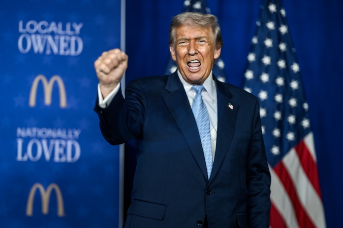 President Donald Trump gestures to the crowd after delivering remarks at the McDonald's Impact Summit, Monday, November 17, 2025, at the Westin D.C. in Washington, D.C., Credit:Daniel Torok / Avalon