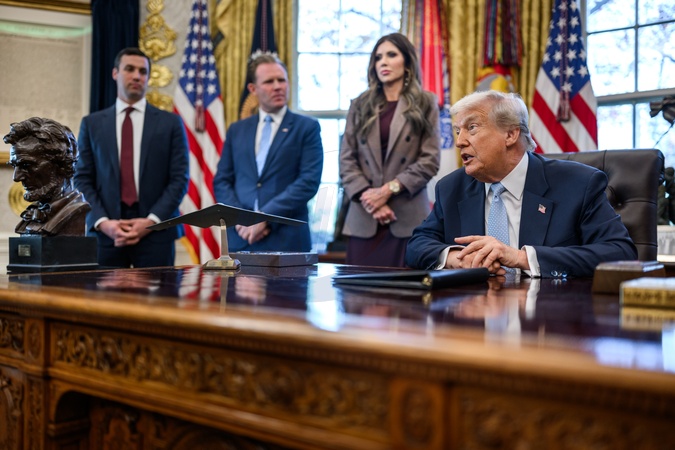 President Donald Trump answers questions from members of the media after meeting with the White House Task Force on the 2026 FIFA World Cup, Monday, November 17, 2025, in the Oval Office., Credit:Daniel Torok / Avalon