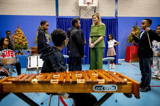 Amsterdam, The Netherlands, 2025-11-20 14:22:45AMSTERDAM, 20-11-2025, Mobiel Primary School. Queen Máxima, honorary chair of More Music in the Classroom, visited Mobiel Primary School in Amsterdam. Mobiel Primary School is one of twelve primary schools participating in the largest school band in the Netherlands. The school band performs during the annual Christmas Music Gala, which raises awareness of the importance of music and creative education. PHOTO: NLBeeld/POOL/Patrick van Katwijk, Credit:Avalon