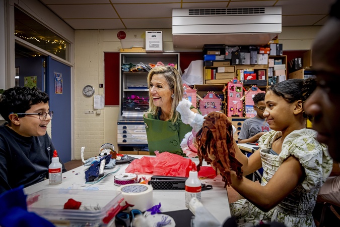 Amsterdam, The Netherlands, 2025-11-20 14:39:09AMSTERDAM, 20-11-2025, Mobiel Primary School. Queen Máxima, honorary chair of More Music in the Classroom, visited Mobiel Primary School in Amsterdam. Mobiel Primary School is one of twelve primary schools participating in the largest school band in the Netherlands. The school band performs during the annual Christmas Music Gala, which raises awareness of the importance of music and creative education. PHOTO: NLBeeld/POOL/Patrick van Katwijk, Credit:Avalon