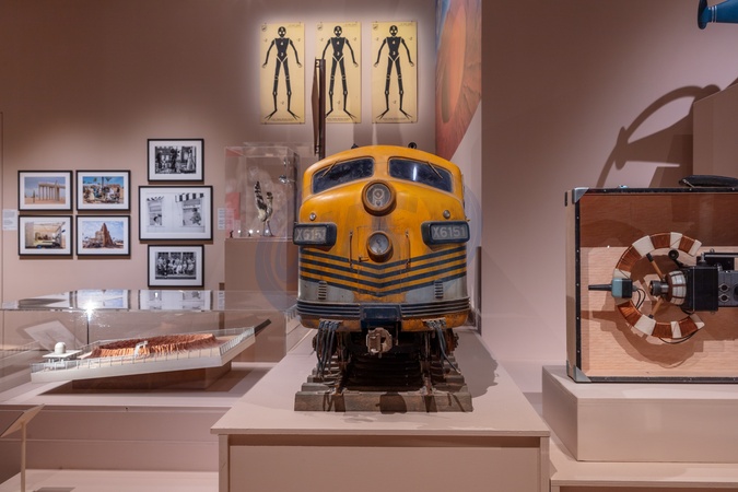 Wes Anderson unveils a retrospective exhibition of his films including The Royal Tenenbaums, Asteroid City and The Phoenician Scheme at the Design Museum in London, featuring over 700 objects including the candy-pink model of the Grand Budapest Hotel, original storyboards, costumes, stop-motion puppets, and handwritten notebooks., Credit:Luke Hayes / Avalon