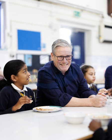 20/11/2025. Reading , United Kingdom. Prime Minister Keir Starmer and Education Secretary Bridget Philppson meets children attending Breakfast Club at the St Anne's Catholic Primary school as the government announces schools with more pupils from lower income backgrounds will be able to apply to open breakfast clubs., Credit:Simon Dawson / Avalon