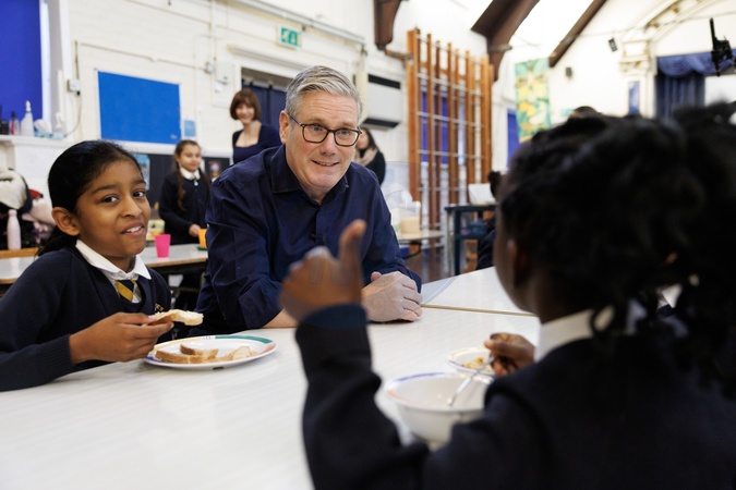 20/11/2025. Reading , United Kingdom. Prime Minister Keir Starmer and Education Secretary Bridget Philppson meets children attending Breakfast Club at the St Anne's Catholic Primary school as the government announces schools with more pupils from lower income backgrounds will be able to apply to open breakfast clubs., Credit:Simon Dawson / Avalon