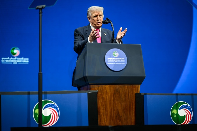 President Donald Trump delivers remarks at the U.S.-Saudi Investment Forum, Wednesday, November 19, 2025, at the John F. Kennedy Center for the Performing Arts in Washington, D.C., Credit:Daniel Torok / Avalon