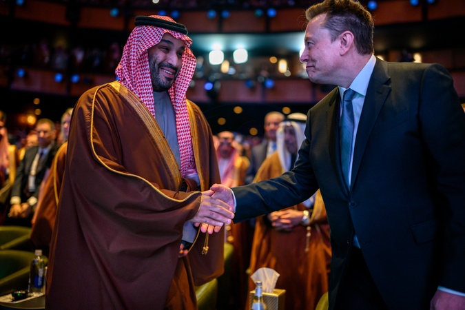 Crown Prince and Prime Minister Mohammed bin Salman Al Saud of Saudi Arabia shakes hands with Elon Musk before President Donald Trump's remarks at the U.S.-Saudi Investment Forum, Wednesday, November 19, 2025, at the John F. Kennedy Center for the Performing Arts in Washington, D.C., Credit:Daniel Torok / Avalon