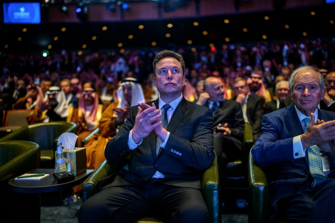 Elon Musk listens to President Donald Trump deliver remarks at the U.S.-Saudi Investment Forum, Wednesday, November 19, 2025, at the John F. Kennedy Center for the Performing Arts in Washington, D.C., Credit:Daniel Torok / Avalon