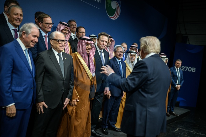 President Donald Trump speaks with Elon Musk, Nvidia CEO Jensen Huang and other business leaders at the U.S.-Saudi Investment Forum, Wednesday, November 19, 2025, at the John F. Kennedy Center for the Performing Arts in Washington, D.C., Credit:Daniel Torok / Avalon