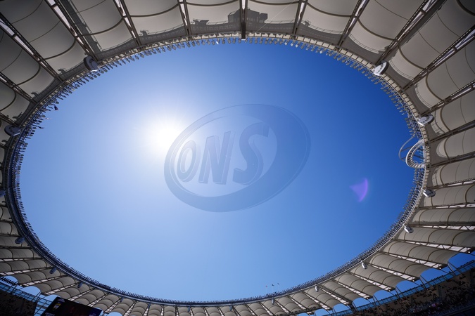 The sun shines high above The Optus Stadium as the stage is set for day one during the NRMA Insurance Ashes First Test Day 1 Series Australia vs England at Optus Stadium, Perth, Australia, 20th November 2025, Credit:Santanu Banik/News Images / Avalon
