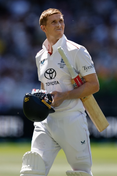 A dejected Zak Crawley of England leaves the field of play after been dismissed during the NRMA Insurance Ashes First Test Day 1 Series Australia vs England at Optus Stadium, Perth, Australia, 20th November 2025, Credit:Santanu Banik/News Images / Avalon