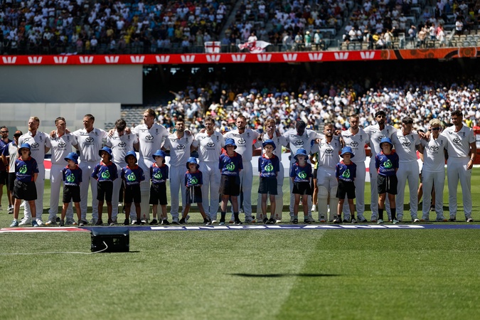 England team lineup during the NRMA Insurance Ashes First Test Day 1 Series Australia vs England at Optus Stadium, Perth, Australia, 20th November 2025, Credit:Santanu Banik/News Images / Avalon
