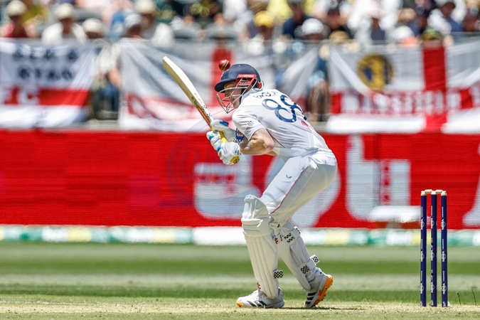 Harry Brook of England ducks a bouncer during the NRMA Insurance Ashes First Test Day 1 Series Australia vs England at Optus Stadium, Perth, Australia, 20th November 2025, Credit:Santanu Banik/News Images / Avalon