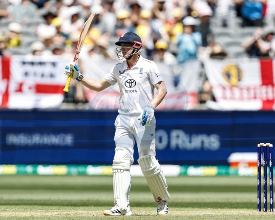 Harry Brook of England celebrates a half century (50 runs) during the NRMA Insurance Ashes First Test Day 1 Series Australia vs England at Optus Stadium, Perth, Australia, 20th November 2025, Credit:Santanu Banik/News Images / Avalon
