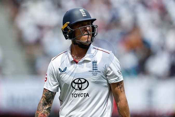 Brydon Carse of England leaves the field of play after been dismissed during the NRMA Insurance Ashes First Test Day 1 Series Australia vs England at Optus Stadium, Perth, Australia, 20th November 2025, Credit:Santanu Banik/News Images / Avalon