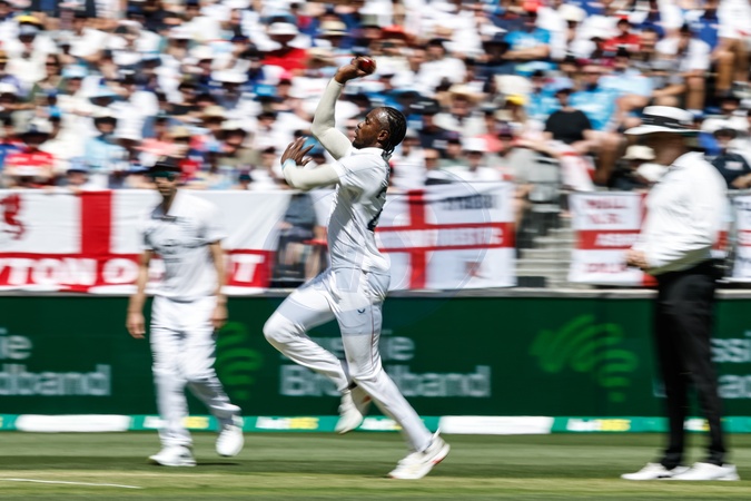 Jofra Archer of England delivers the ball during the NRMA Insurance Ashes First Test Day 1 Series Australia vs England at Optus Stadium, Perth, Australia, 20th November 2025, Credit:Santanu Banik/News Images / Avalon