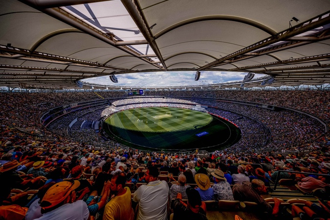Its a full house as the The Optus Stadium is jam-packed to the rafters during the NRMA Insurance Ashes First Test Day 1 Series Australia vs England at Optus Stadium, Perth, Australia, 20th November 2025, Credit:Santanu Banik/News Images / Avalon