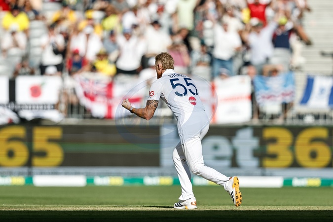 England captain Ben Stokes celebrates the wicket of Travis Head of Australia during the NRMA Insurance Ashes First Test Day 1 Series Australia vs England at Optus Stadium, Perth, Australia, 20th November 2025, Credit:Santanu Banik/News Images / Avalon