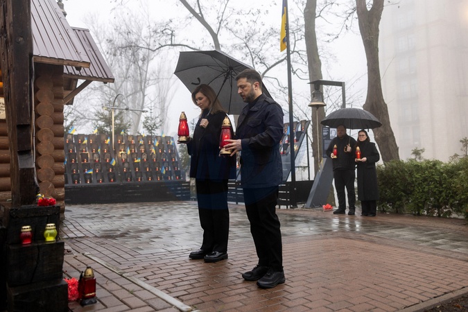 On the Day of Dignity and Freedom, President of Ukraine Volodymyr Zelenskyy and First Lady Olena Zelenska honored the memory of the Ukrainians who were killed during the Revolution of Dignity. They placed memorial candles at the cross on the Alley of the Heroes of the Heavenly Hundred. Kyiv, Ukraine, 21 November 2025., Credit:Office of the President of Ukraine / Avalon
