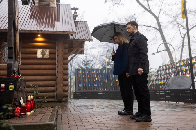 On the Day of Dignity and Freedom, President of Ukraine Volodymyr Zelenskyy and First Lady Olena Zelenska honored the memory of the Ukrainians who were killed during the Revolution of Dignity. They placed memorial candles at the cross on the Alley of the Heroes of the Heavenly Hundred. Kyiv, Ukraine, 21 November 2025., Credit:Office of the President of Ukraine / Avalon