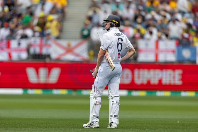 Zak Crawley of England is seen waiting for a DRS verdict during the NRMA Insurance Ashes First Test Day 2 Australia vs England at Optus Stadium, Perth, Australia, 22nd November 2025, Credit:Santanu Banik/News Images / Avalon