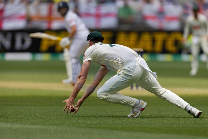 Beau Webster of Australia dives to catch the ball during the NRMA Insurance Ashes First Test Day 2 Australia vs England at Optus Stadium, Perth, Australia, 22nd November 2025, Credit:Santanu Banik/News Images / Avalon