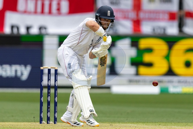 Ben Duckett of England plays a defensive shot during the NRMA Insurance Ashes First Test Day 2 Australia vs England at Optus Stadium, Perth, Australia, 22nd November 2025, Credit:Santanu Banik/News Images / Avalon