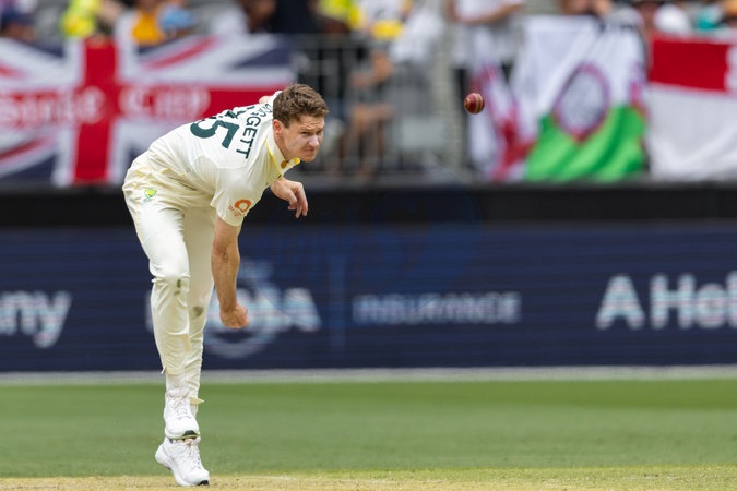 Brendan Doggett of Australia bowls during the NRMA Insurance Ashes First Test Day 2 Australia vs England at Optus Stadium, Perth, Australia, 22nd November 2025, Credit:Santanu Banik/News Images / Avalon