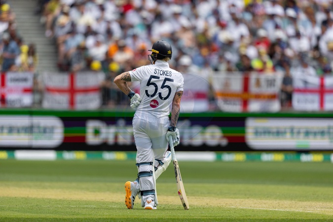 Ben Stokes (c) of England in action during the NRMA Insurance Ashes First Test Day 2 Australia vs England at Optus Stadium, Perth, Australia, 22nd November 2025, Credit:Santanu Banik/News Images / Avalon