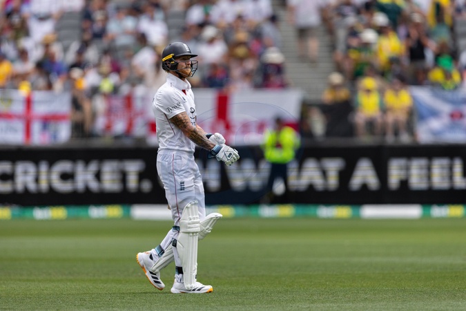Ben Stokes (c) of England walks off after getting out during the NRMA Insurance Ashes First Test Day 2 Australia vs England at Optus Stadium, Perth, Australia, 22nd November 2025, Credit:Santanu Banik/News Images / Avalon