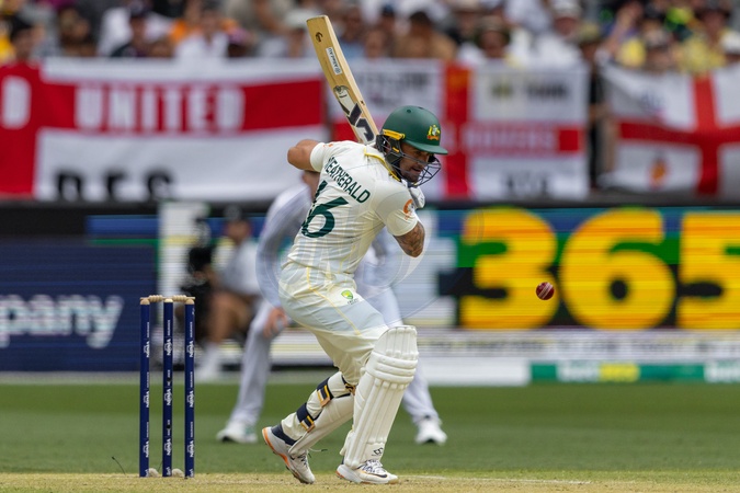 Jake Weatherald of Australia leaves the ball during the NRMA Insurance Ashes First Test Day 2 Australia vs England at Optus Stadium, Perth, Australia, 22nd November 2025, Credit:Santanu Banik/News Images / Avalon