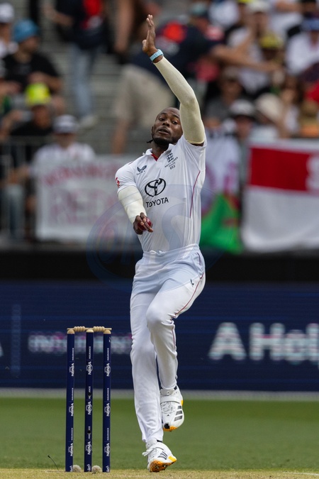 Jofra Archer of England bowls during the NRMA Insurance Ashes First Test Day 2 Australia vs England at Optus Stadium, Perth, Australia, 22nd November 2025, Credit:Santanu Banik/News Images / Avalon