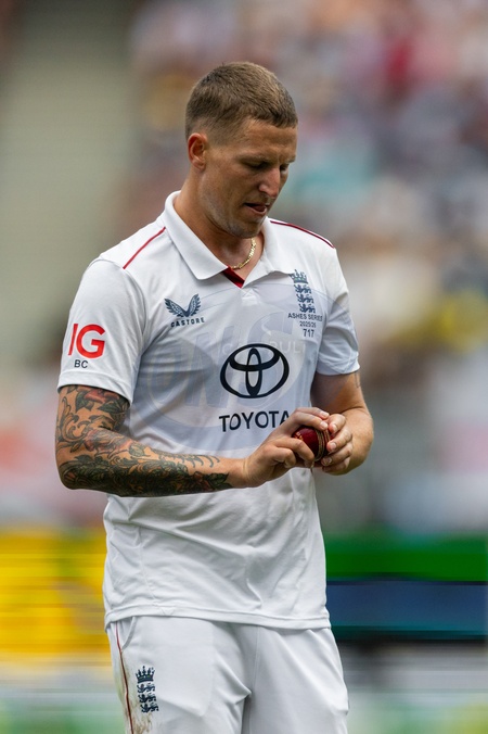 Brydon Carse of England in his run-up during the NRMA Insurance Ashes First Test Day 2 Australia vs England at Optus Stadium, Perth, Australia, 22nd November 2025, Credit:Santanu Banik/News Images / Avalon