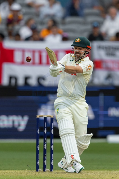 Travis Head of Australia plays a pull shot during the NRMA Insurance Ashes First Test Day 2 Australia vs England at Optus Stadium, Perth, Australia, 22nd November 2025, Credit:Santanu Banik/News Images / Avalon