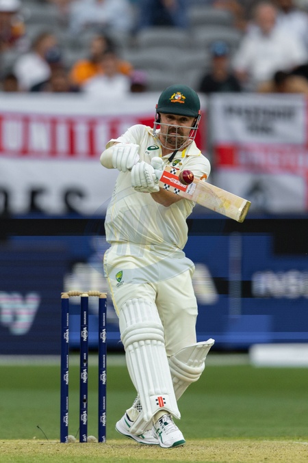 Travis Head of Australia plays a pull shot during the NRMA Insurance Ashes First Test Day 2 Australia vs England at Optus Stadium, Perth, Australia, 22nd November 2025, Credit:Santanu Banik/News Images / Avalon