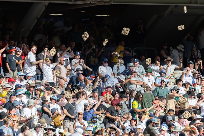 Fans show their support in the stands during the NRMA Insurance Ashes First Test Day 2 Australia vs England at Optus Stadium, Perth, Australia, 22nd November 2025, Credit:Santanu Banik/News Images / Avalon