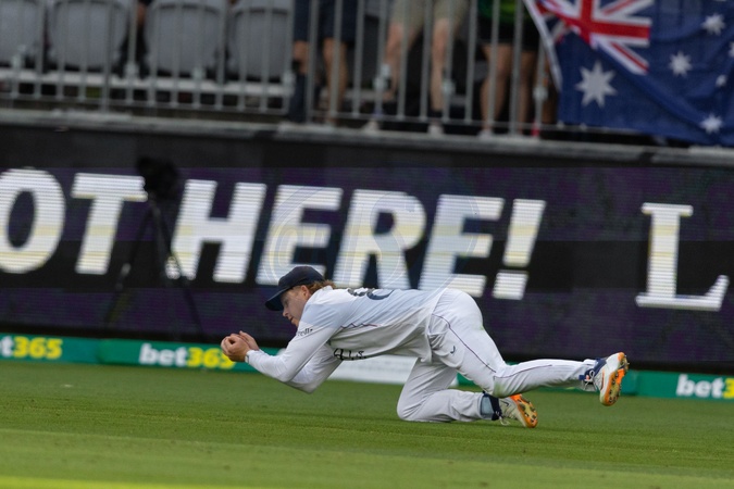 Ollie Pope of England takes a catch during the NRMA Insurance Ashes First Test Day 2 Australia vs England at Optus Stadium, Perth, Australia, 22nd November 2025, Credit:Santanu Banik/News Images / Avalon