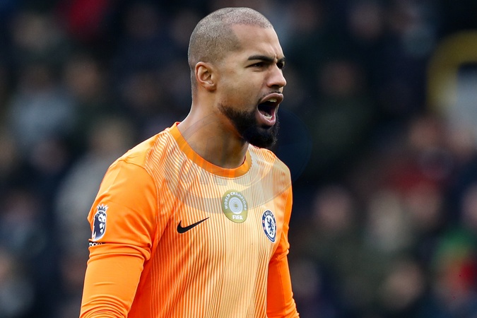 Robert Sanchez of Chelsea celebrates Pedro Neto of Chelsea goal to make it 0-1 during the Premier League match Burnley vs Chelsea at Turf Moor, Burnley, United Kingdom, 22nd November 2025, Credit:Jorge Horsted/News Images / Avalon
