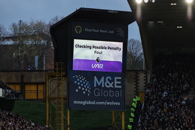 VAR penalty check for a Crystal Palace penalty during the Premier League match Wolverhampton Wanderers vs Crystal Palace at Molineux, Wolverhampton, United Kingdom, 22nd November 2025, Credit:Mark Cosgrove/News Images / Avalon