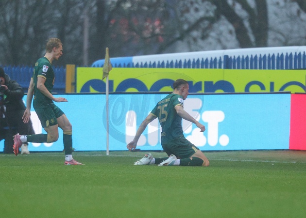 Bojan Radulovic of Huddersfield Town celebrates his goal to make it 0-1 during the Sky Bet League 1 match Mansfield Town vs Huddersfield Town at One Call Stadium, Mansfield, United Kingdom, 22nd November 2025, Credit:Richard Bierton/News Images / Avalon
