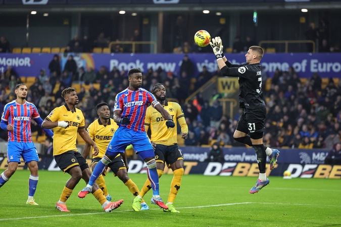 Wolverhampton Wanderers goalkeeper Sam Johnstone collects the crossed ball during the Premier League match Wolverhampton Wanderers vs Crystal Palace at Molineux, Wolverhampton, United Kingdom, 22nd November 2025, Credit:Mark Cosgrove/News Images / Avalon