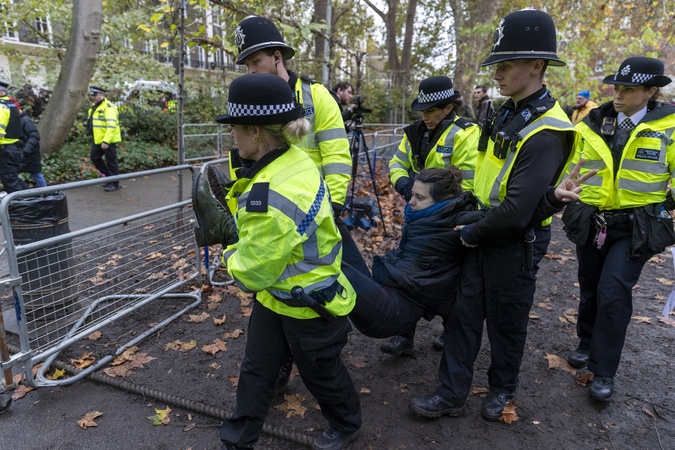 The Peace Garden, Tavistock Square, WC1H 9BQ — Saturday 22nd November 2025. Protesters gathered for the second London "Lift the Ban” event, opposing the government's ban on direct-action group Palestine Action. The demonstration formed part of the wider "Defend Our Juries” campaign. Police maintained a strong presence throughout the protest, during which approximately 100 people were arrested for terrorism offences., Credit:Abdullah Bailey / Avalon