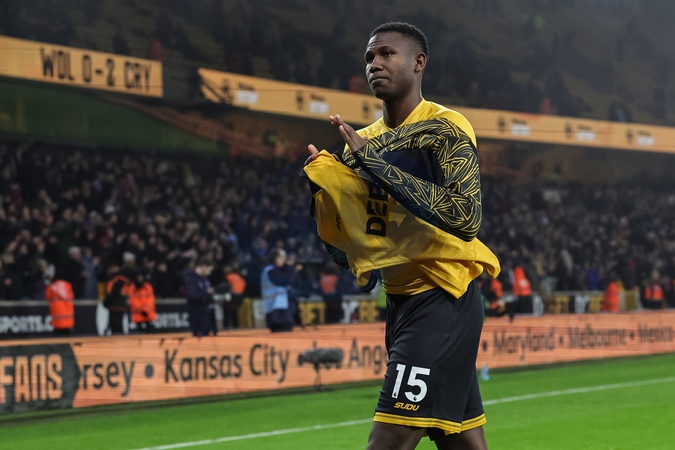 Yerson Mosquera of Wolverhampton Wanderers applauds the fans after the final whistle during the Premier League match Wolverhampton Wanderers vs Crystal Palace at Molineux, Wolverhampton, United Kingdom, 22nd November 2025, Credit:Mark Cosgrove/News Images / Avalon