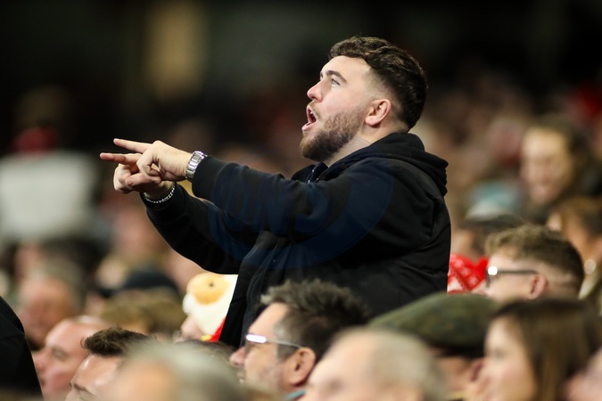 New Zealand fans celebrate during the Quilter Nations Series 2025 match Wales vs New Zealand at Principality Stadium, Cardiff, United Kingdom, 22nd November 2025, Credit:Andrew Lewis/News Images / Avalon