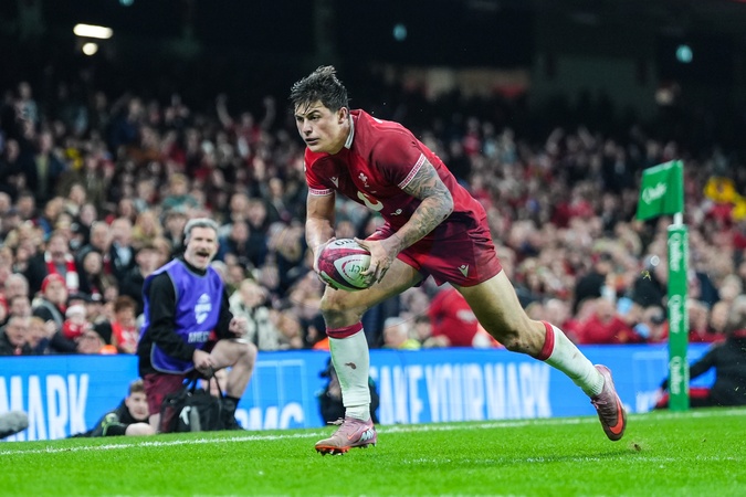 Louis Rees-Zammit of Wales scores a try for his teamt during the Quilter Nations Series 2025 match Wales vs New Zealand at Principality Stadium, Cardiff, United Kingdom, 22nd November 2025, Credit:Andrew Lewis/News Images / Avalon