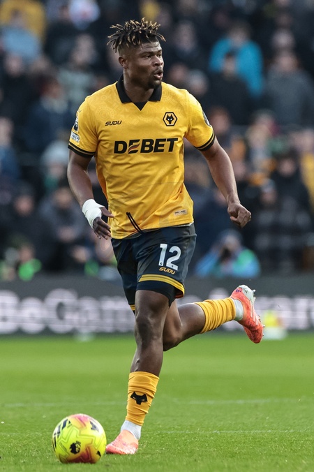 Emmanuel Agbadou of Wolverhampton Wanderers breaks with the ball during the Premier League match Wolverhampton Wanderers vs Crystal Palace at Molineux, Wolverhampton, United Kingdom, 22nd November 2025, Credit:Mark Cosgrove/News Images / Avalon