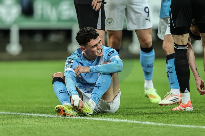 Phil Foden of Manchester City appeals for a penalty as he goes down injured during the Premier League match Newcastle United vs Manchester City at St. James's Park, Newcastle, United Kingdom, 21st November 2025, Credit:Ae Cosgrove/News Images / Avalon